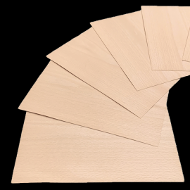 Concernant la découpe avec un cutter ou un couteau à placage, il est préférable de couper en suivant le sens des fibres du bois. Pour vérifier ce point, passez le doigt le long de la tranche de la feuille. Le sens qui est le plus lisse est le sens idéal pour faire votre découpe.